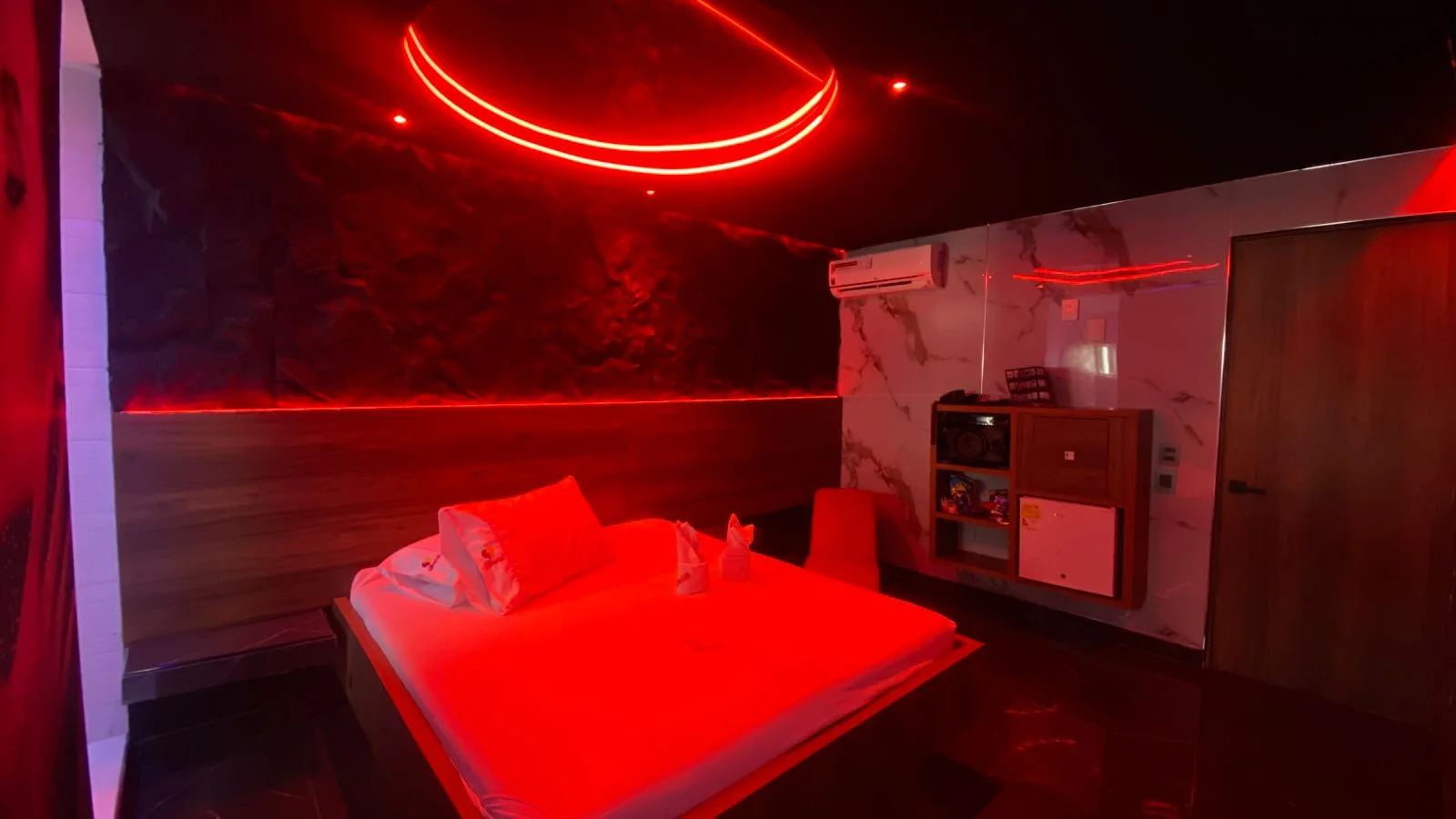 Ofrecemos esta habitación para hacer inolvidables tus momentos especiales. Este cuarto tiene un área de 18 metros, cuenta con baño abierto, cama doble, silla del amor, mini bar, TV y equipo de sonido, aire acondicionado. ¡Haz tu reserva ya!