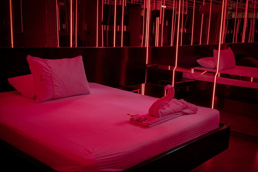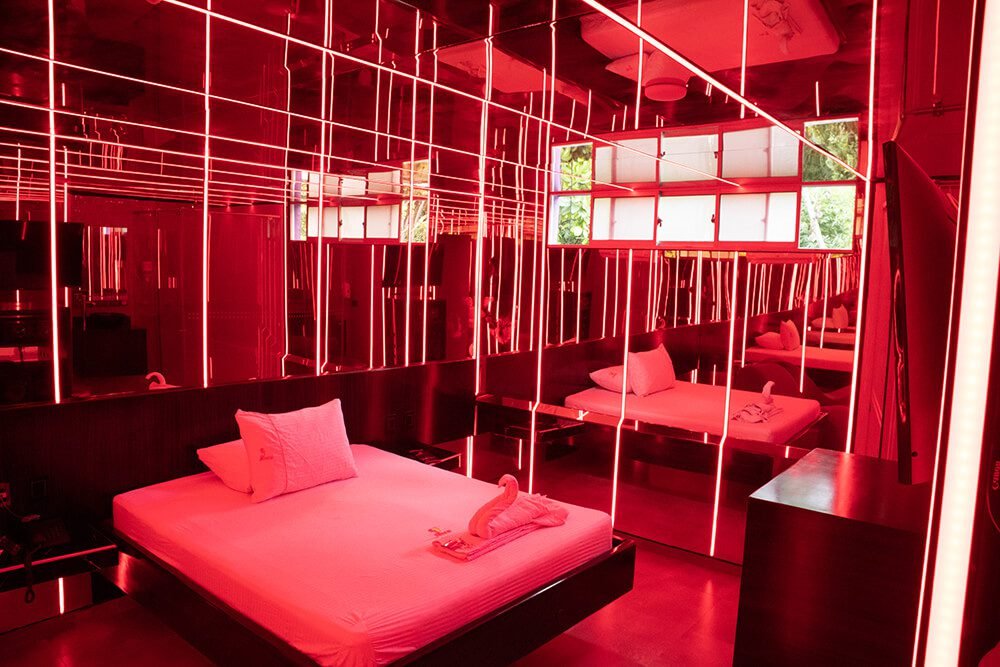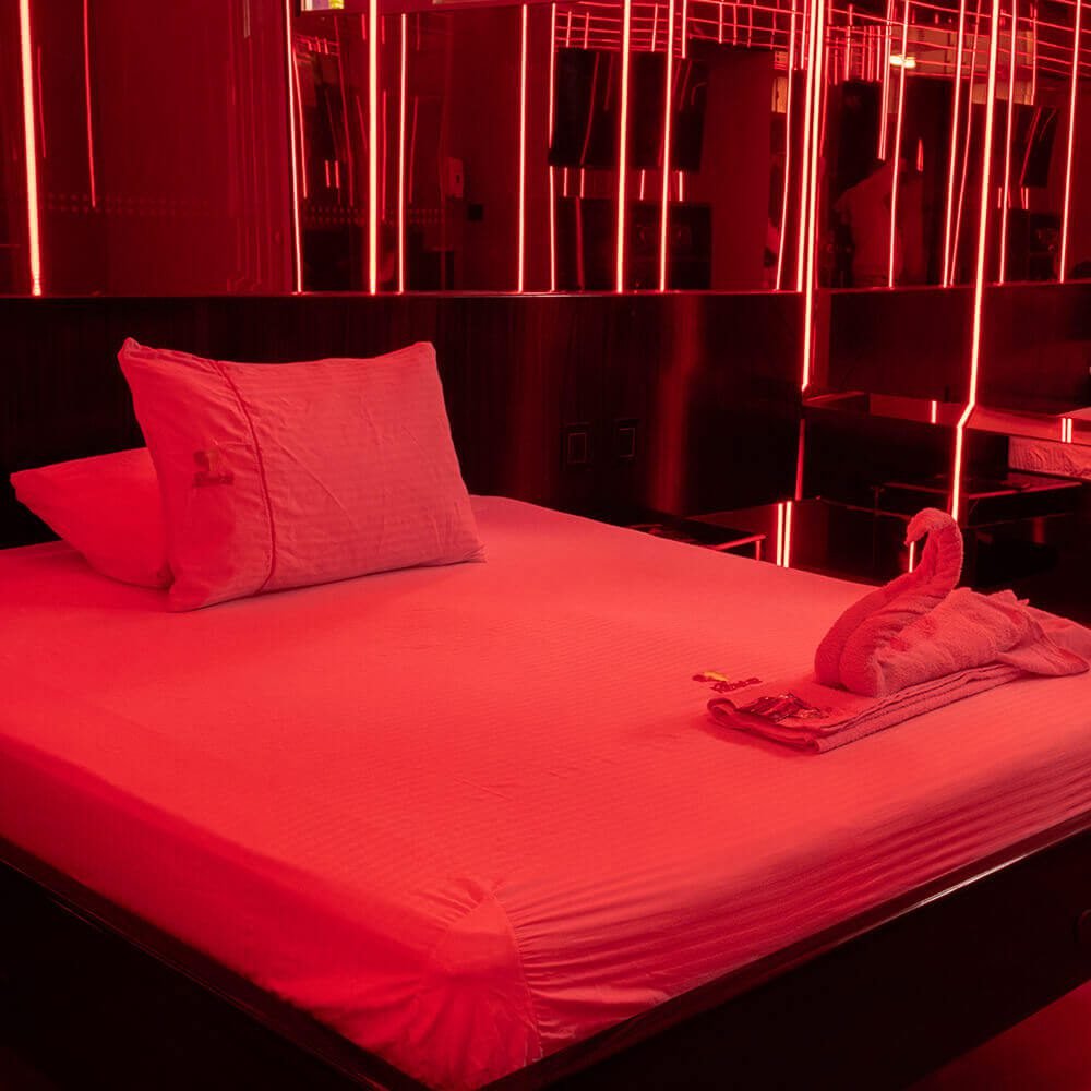 Si quieres placer e intimidad y disfrutar viendo el reflejo de tu pareja esta es tu habitación. Las luces, los espejos y los juguetes crean un ambiente donde se puede disfrutar el momento, los instantes y encuentros fugaces junto a tu pareja. Hazlo ahora y no te arrepentirás después. ¿Estás buscando un motel económico cerca? Ofrecemos esta habitación sencilla de 19 metros con aire acondicionado, tiene cama doble, TV, Radio y baño abierto.